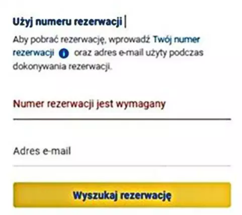 10. W celu wczytania rezerwacji należy podać numer PNR (6-cyfrowy kod) i adres mailowy.