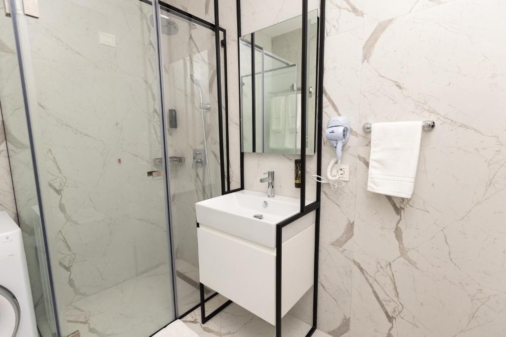 Pokoje są nowoczesne, jasne i komfortowe — każdy z prywatnym balkonem, klimatyzacją oraz elegancką łazienką. Oferują wygodne łóżka, minibar, biurko do pracy i szybkie Wi-Fi, tworząc idealne warunki zarówno do wypoczynku, jak i podróży służbowych.