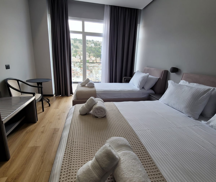 Elegancki hotel, oferujący strefę spa i wellness oraz basen wewnętrzny. Obiekt jest przyjazny dzieciom oraz umożliwia zakwaterowanie w 4-osobowych pokojach rodzinnych. Dodatkowym atutem jest bliskość promenady i plaży Saranda Beach (ok. 500m).