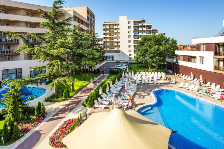 Hotel położony blisko ścisłego centrum Słonecznego Brzegu oraz zaledwie 300 metrów od piaszczystej, szerokiej plaży z łagodnym zejściem. Oprócz wyżywienia All Inclusive głównym atutem obiektu jest aquapark ze zjeżdżalniami zarówno dla dzieci, jak i dorosłych, co czyni go idealnym wyborem dla osób szukających zarówno zabawy, jak i odpoczynku. Dzięki swojemu położeniu hotel może stanowić również świetną bazę wypadową dla wycieczek po regionie Słonecznego Brzegu.
