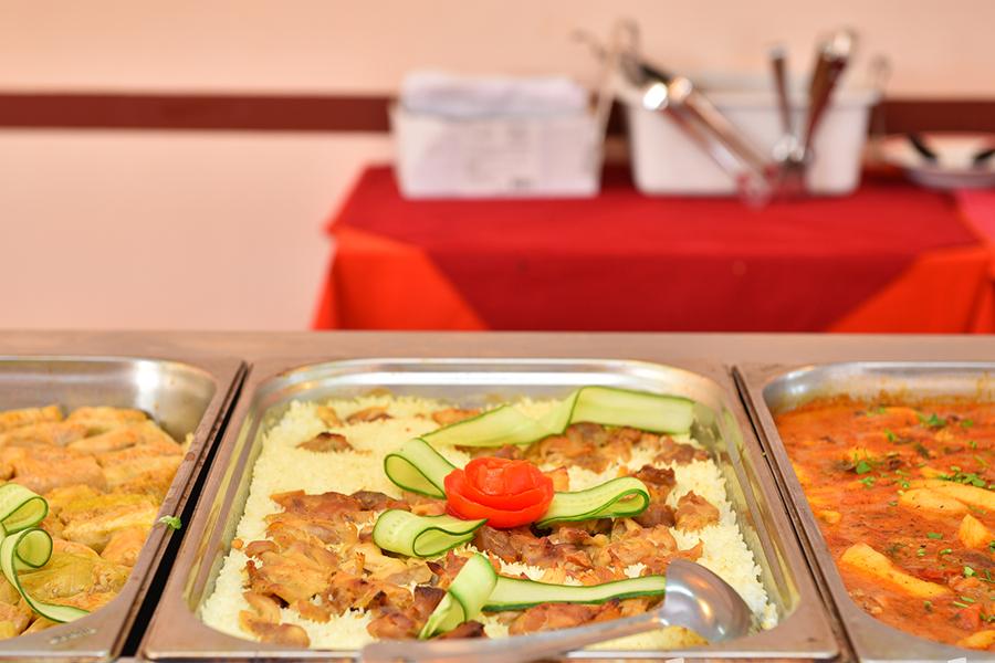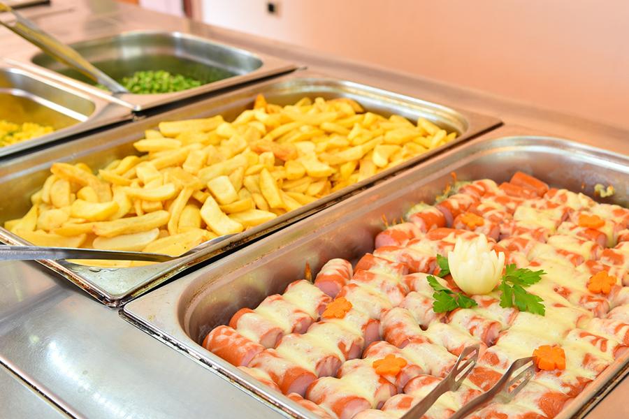 Posiłki wydawane w formie bufetu: śniadania (07:30-10:00), obiad (12:00-13:30), kolacja (18:00-20:30), podwieczorek (16:00-17:00).