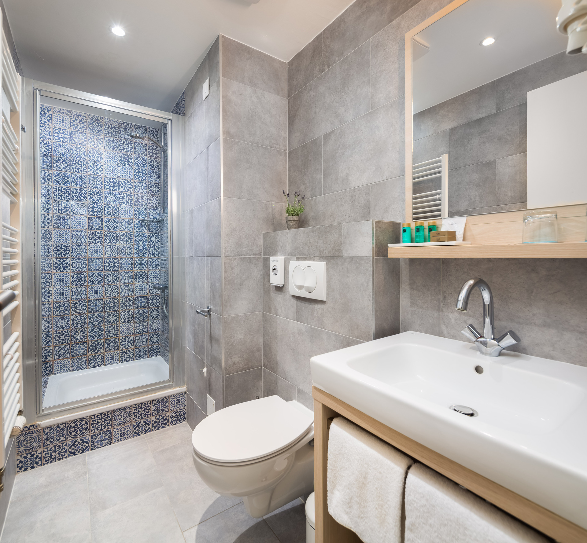 Dostępne pokoje 2-osobowe oraz rodzinne (dla 3–4 osób) wyposżone w: