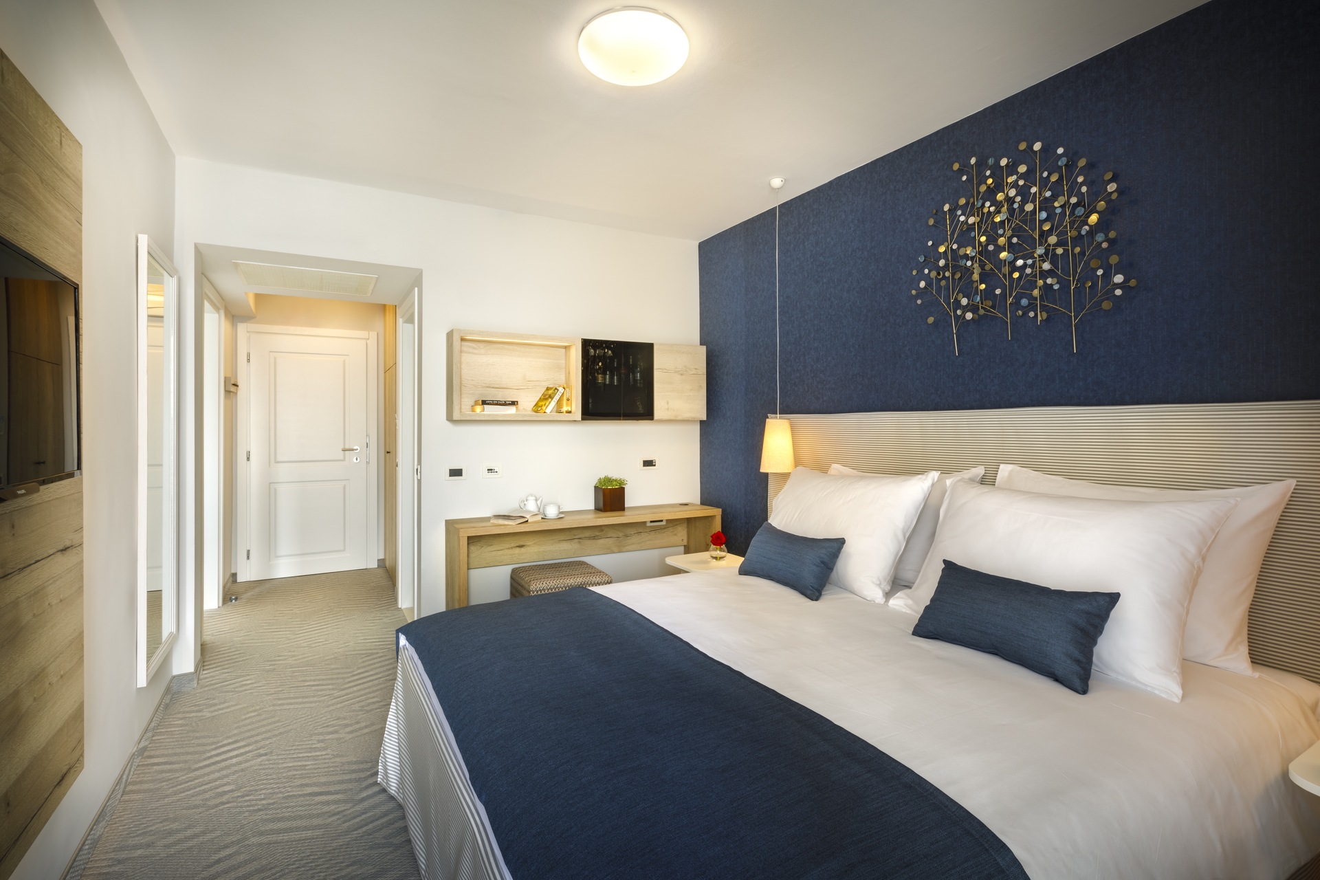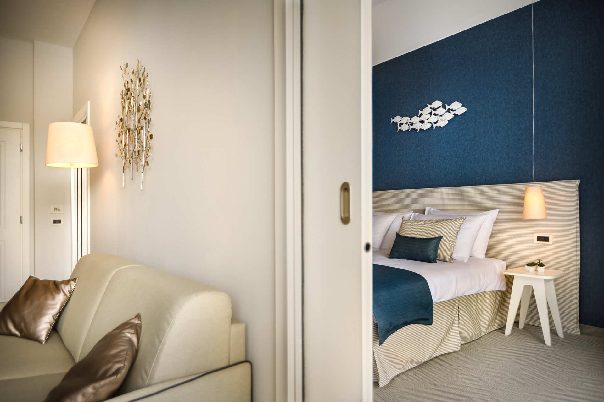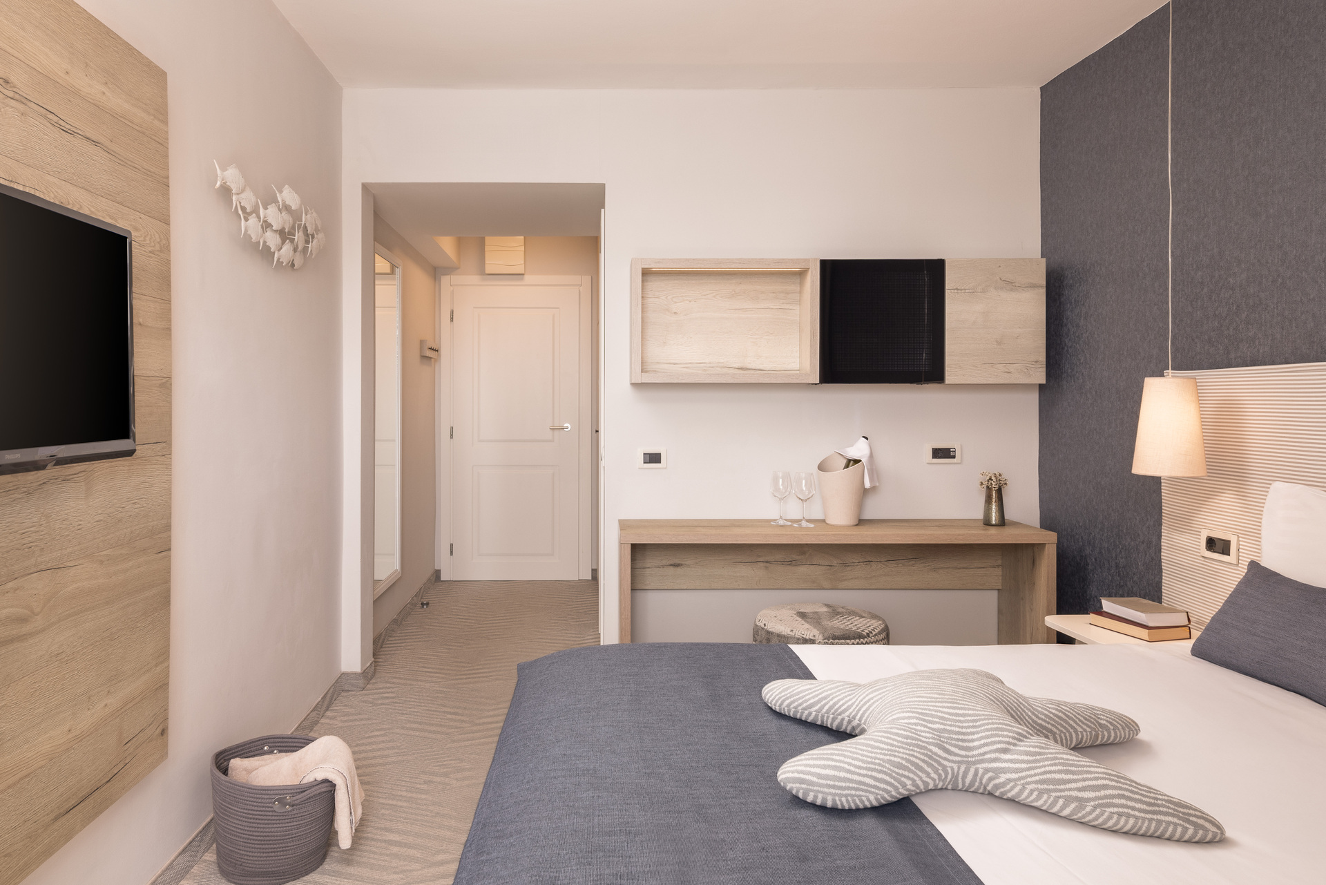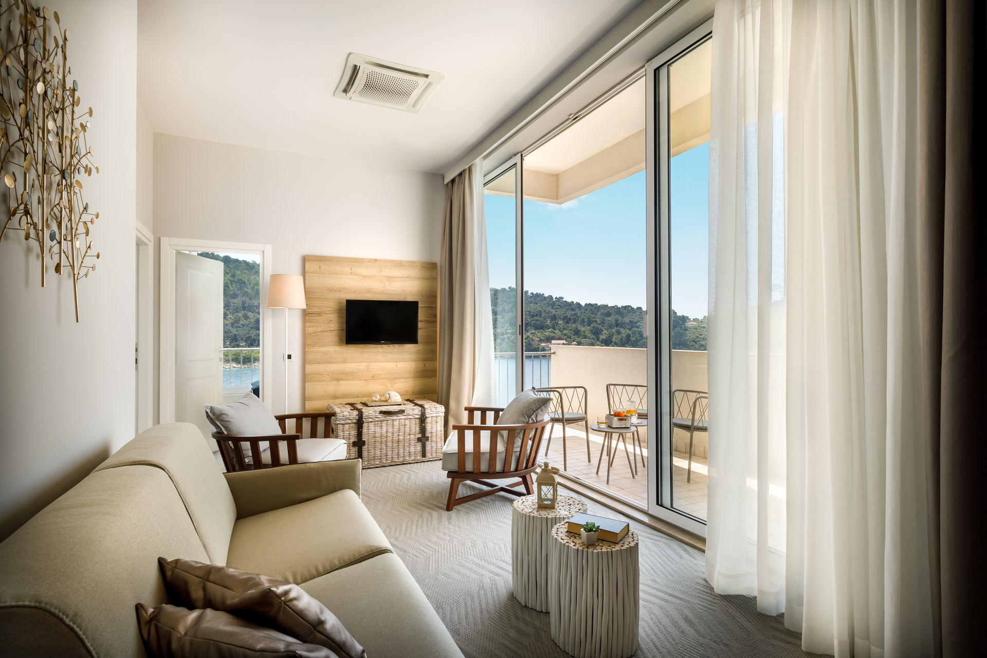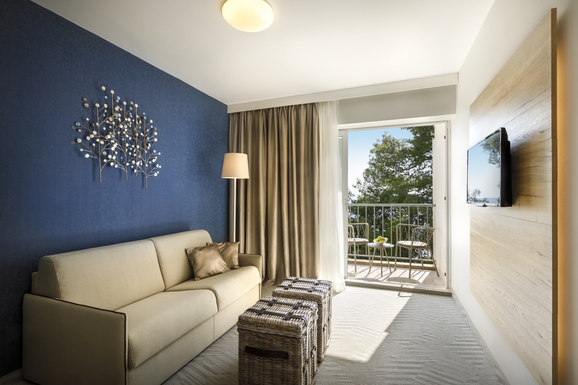 Hotel oferuje nowoczesne pokoje i apartamenty z widokiem na morze lub otaczającą zieleń.