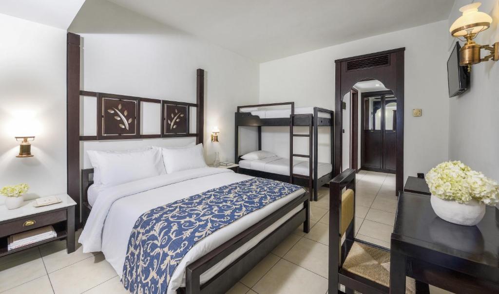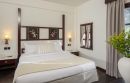 Pokoje utrzymane w tradycyjnym stylu, spójne z architekturą całego resortu – bardziej klimatyczne niż nowoczesne. Dostępne są pokoje standardowe, rodzinne oraz apartamenty wyposażone w: