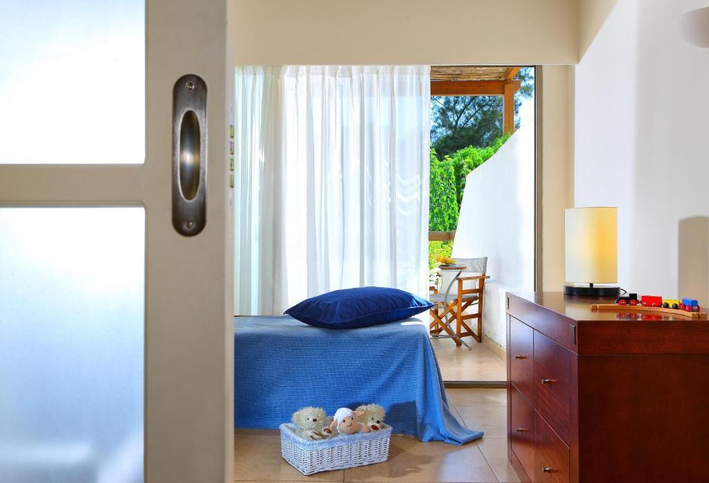 Pokoje wyposażone są w klimatyzację, telewizor, lodówkę, prywatną łazienkę oraz balkon lub taras z widokiem na ogród lub morze.