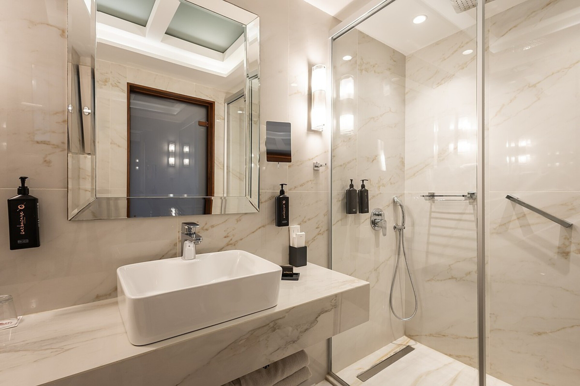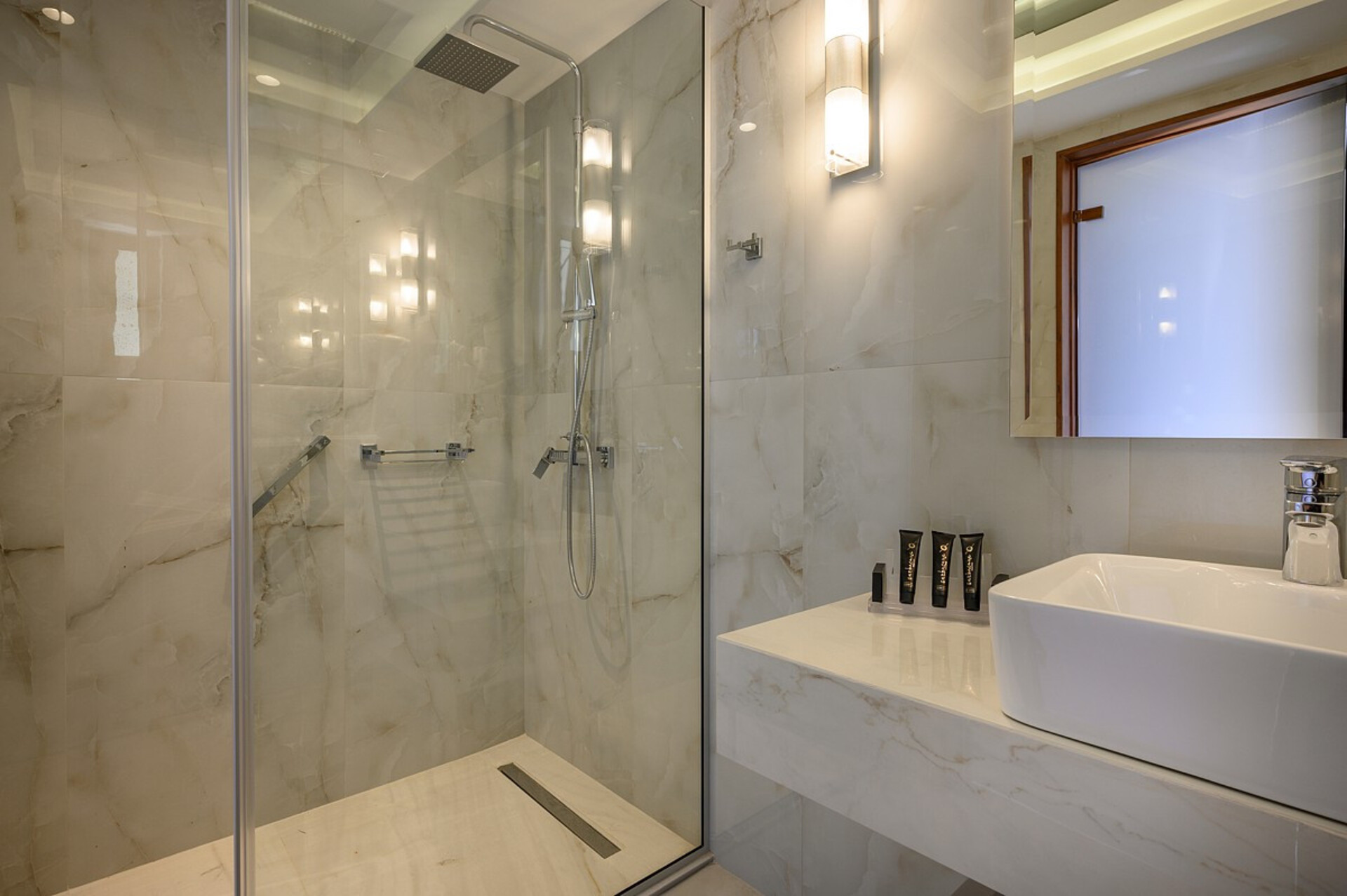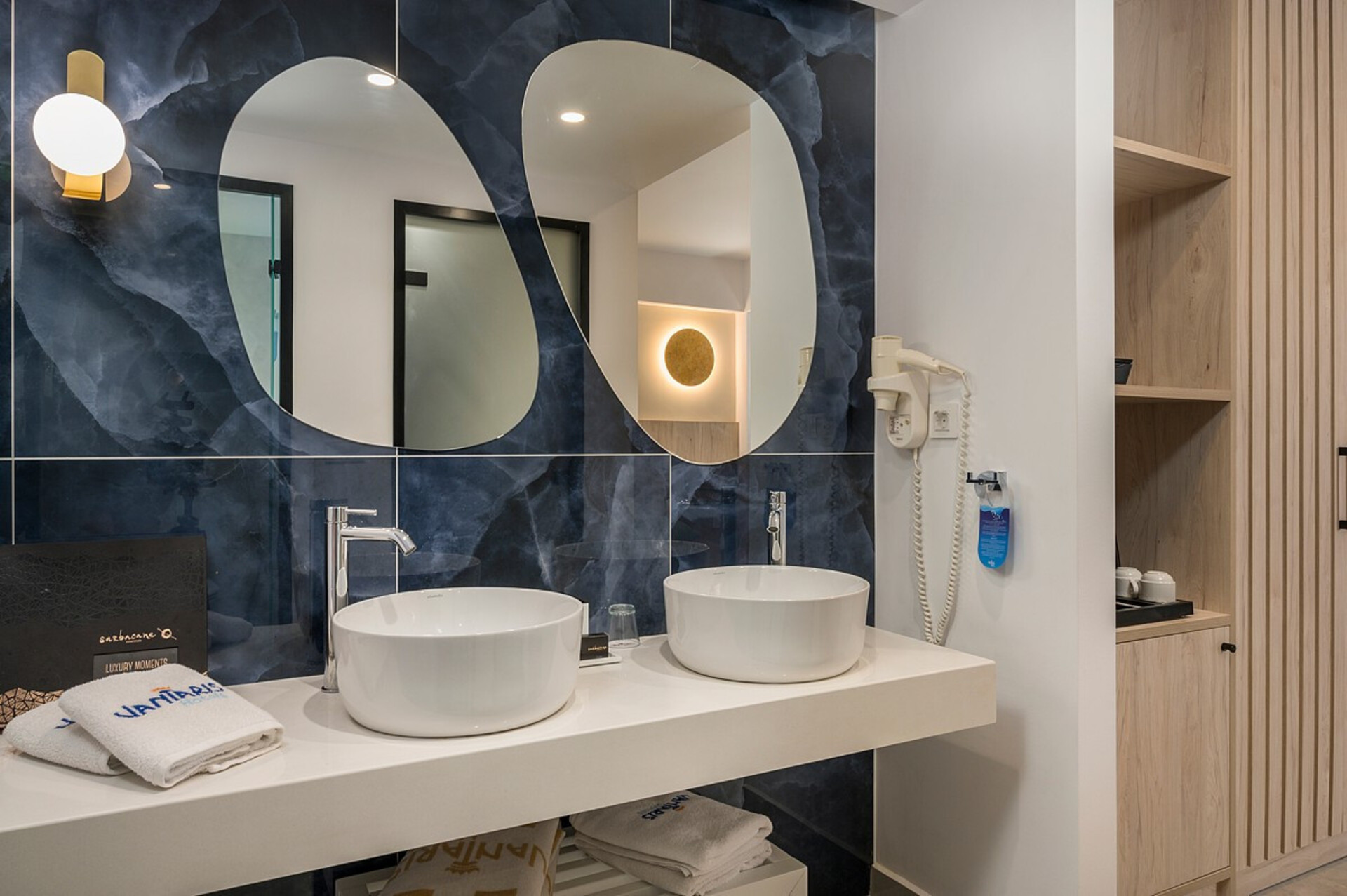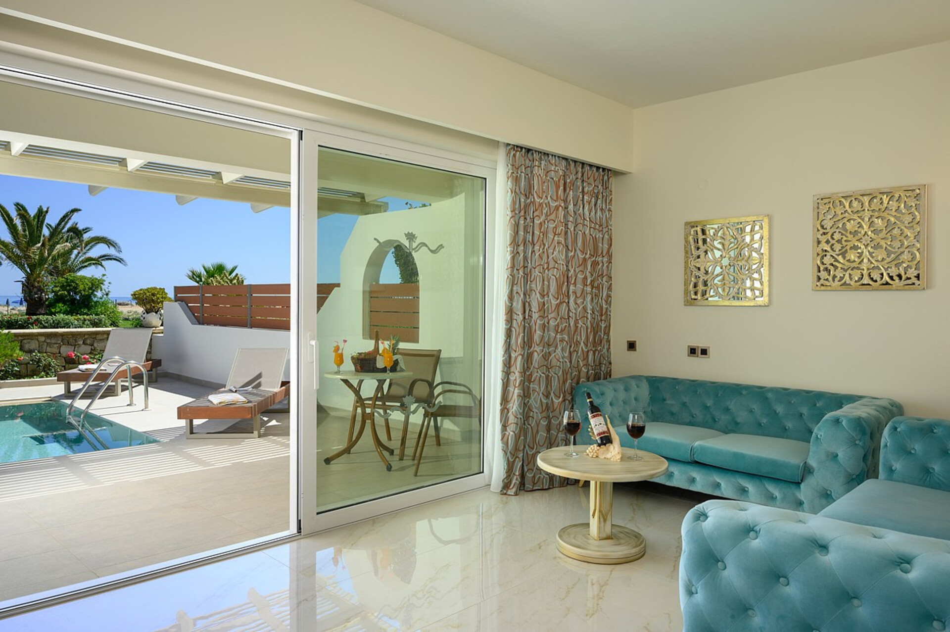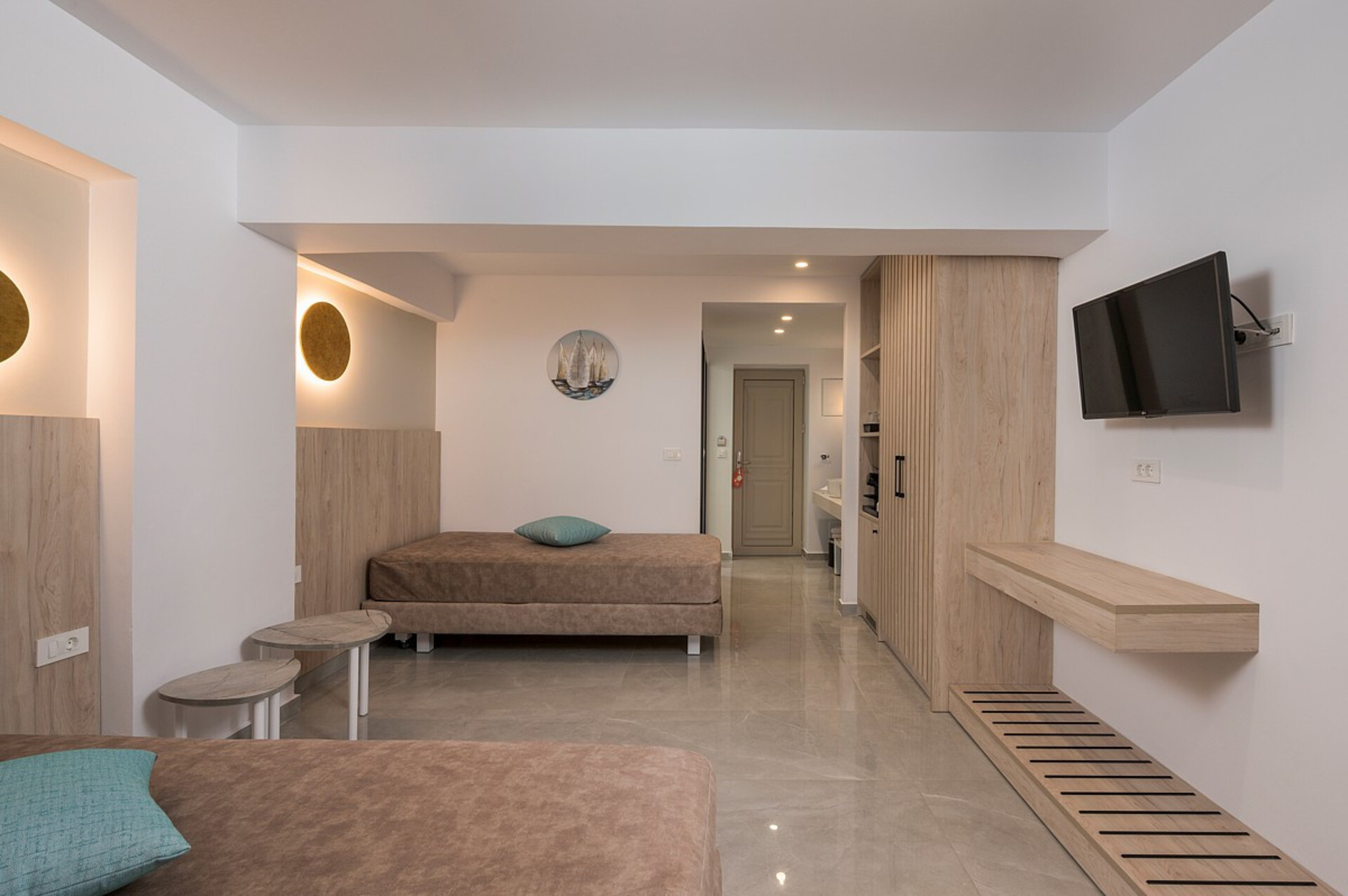 Pokoje są klimatyzowane, wyposażone w łazienkę z prysznicem lub wanną, TV SAT, lodówkę, sejf (dodatkowo płatny), balkon lub taras oraz opcje widoku na ogród lub morze.