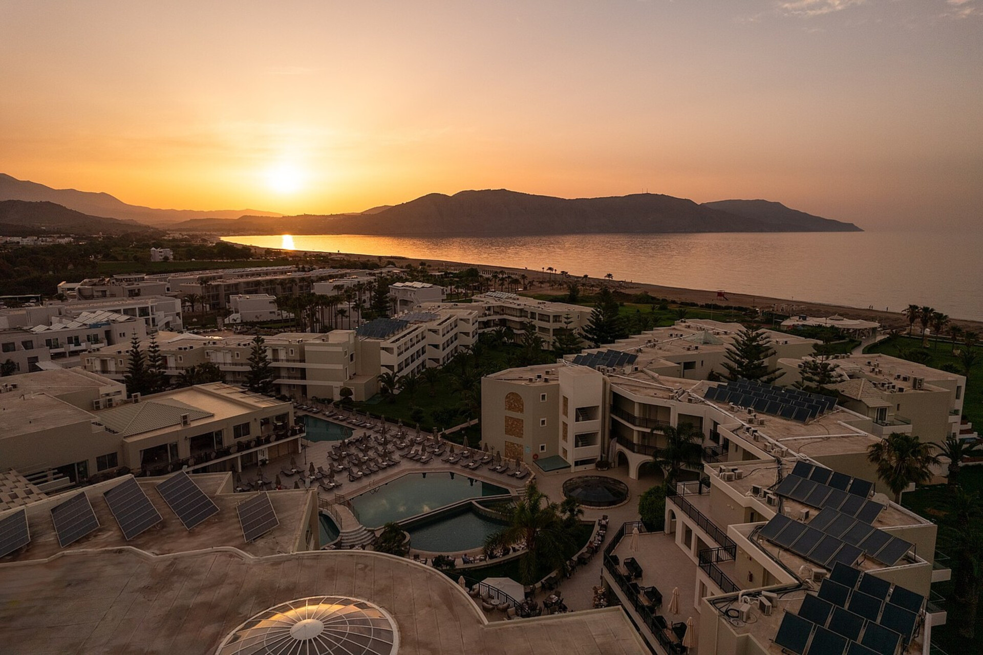 SprawdźHotel Vantaris Palace to czterogwiazdkowy obiekt położony bezpośrednio przy szerokiej, piaszczysto-żwirowej plaży. Goście cenią komfortowe pokoje, rozbudowane zaplecze rekreacyjne z basenami, spa i sportami oraz wysoką jakość bufetowych posiłków, co sprawia, że hotel sprawdza się zarówno dla rodzin, jak i par.