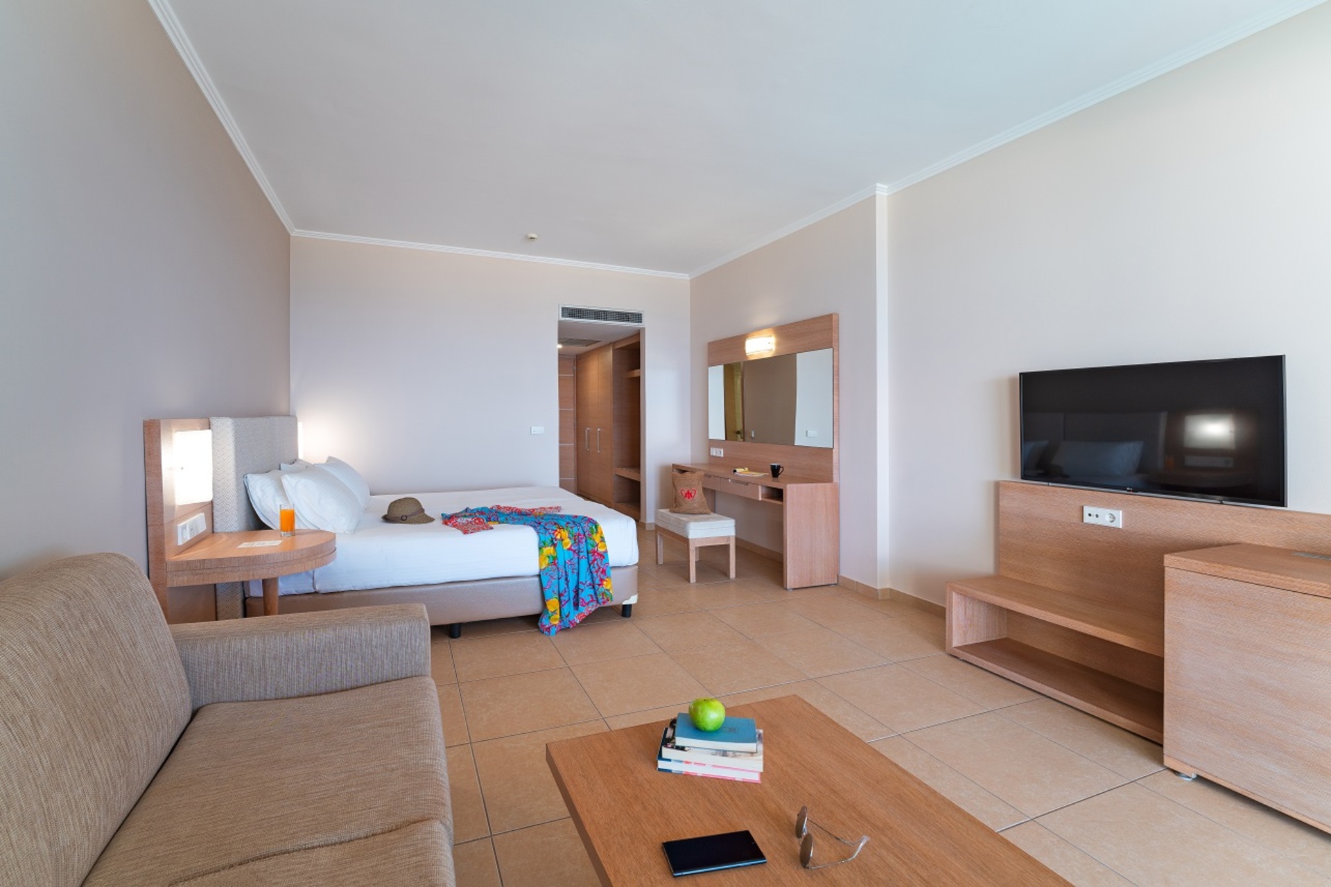 Pokoje standardowe, rodzinne i suite. Część pokoi z widokiem na morze.