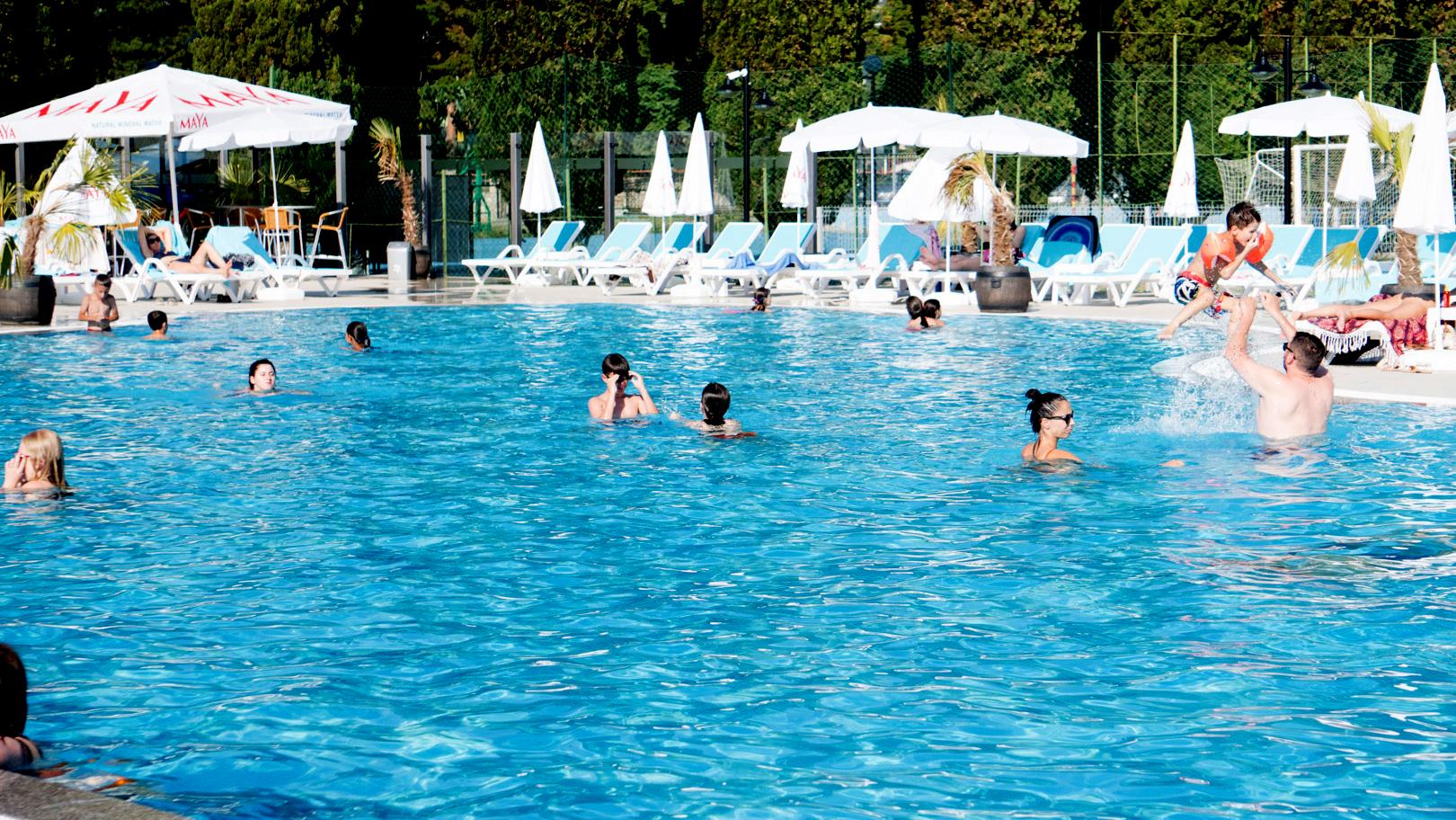 - zewnętrzny basen z leżakami i parasolami