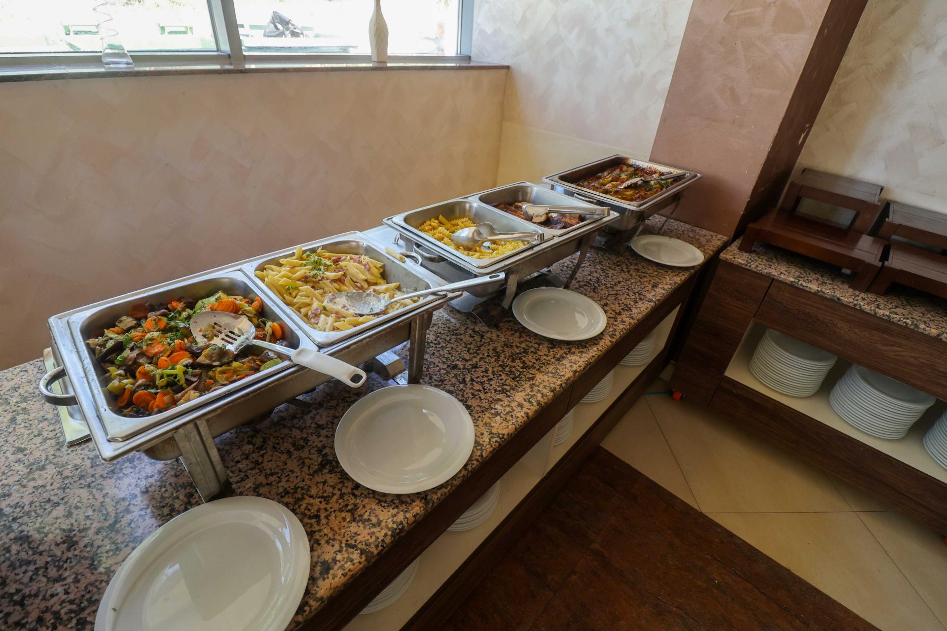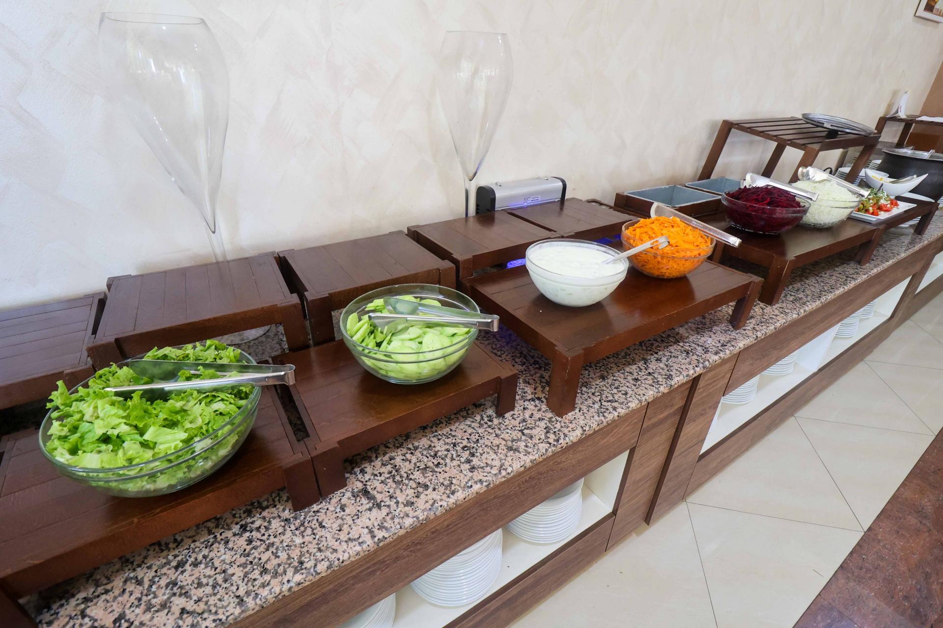 Kolacja - 19:00-21:00 pieczywo, świeże sałaty, zupa, przystawki, 3 rodzaje dania głównego (mięso, ryba, makaron), deser.