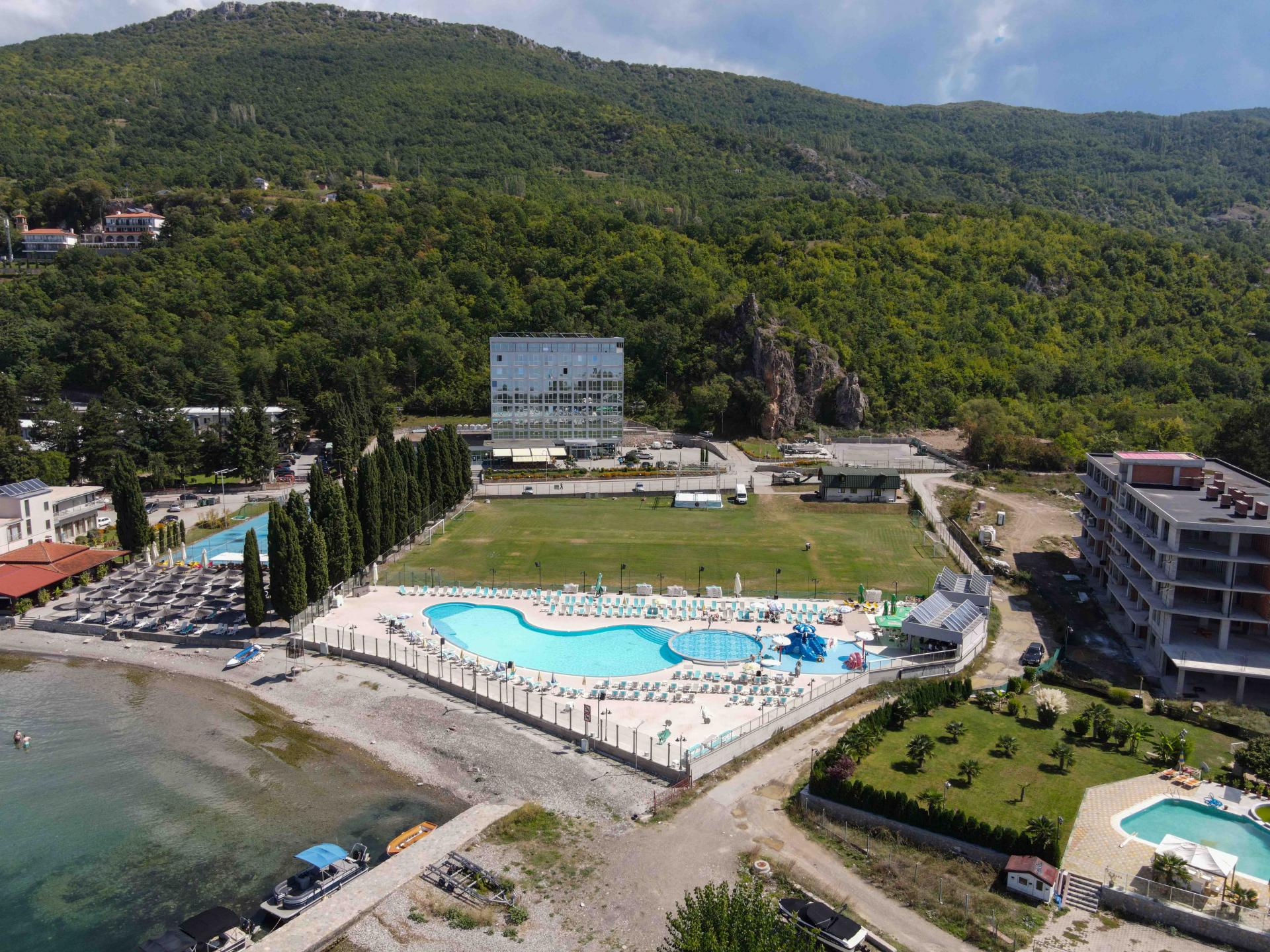 Komfortowy obiekt o wyjątkowej lokalizacji, skąd Goście mogą podziwiać piękne krajobrazy jeziora oraz gór. Hotel posiada wiele udogodnień, między innymi basen, prywatną plażę. Okolica jest spokojna, idealna na relaks. Zapraszamy wszystkich, którzy pragną odpoczynku w zielonej scenerii na wczasy w Macedonii.