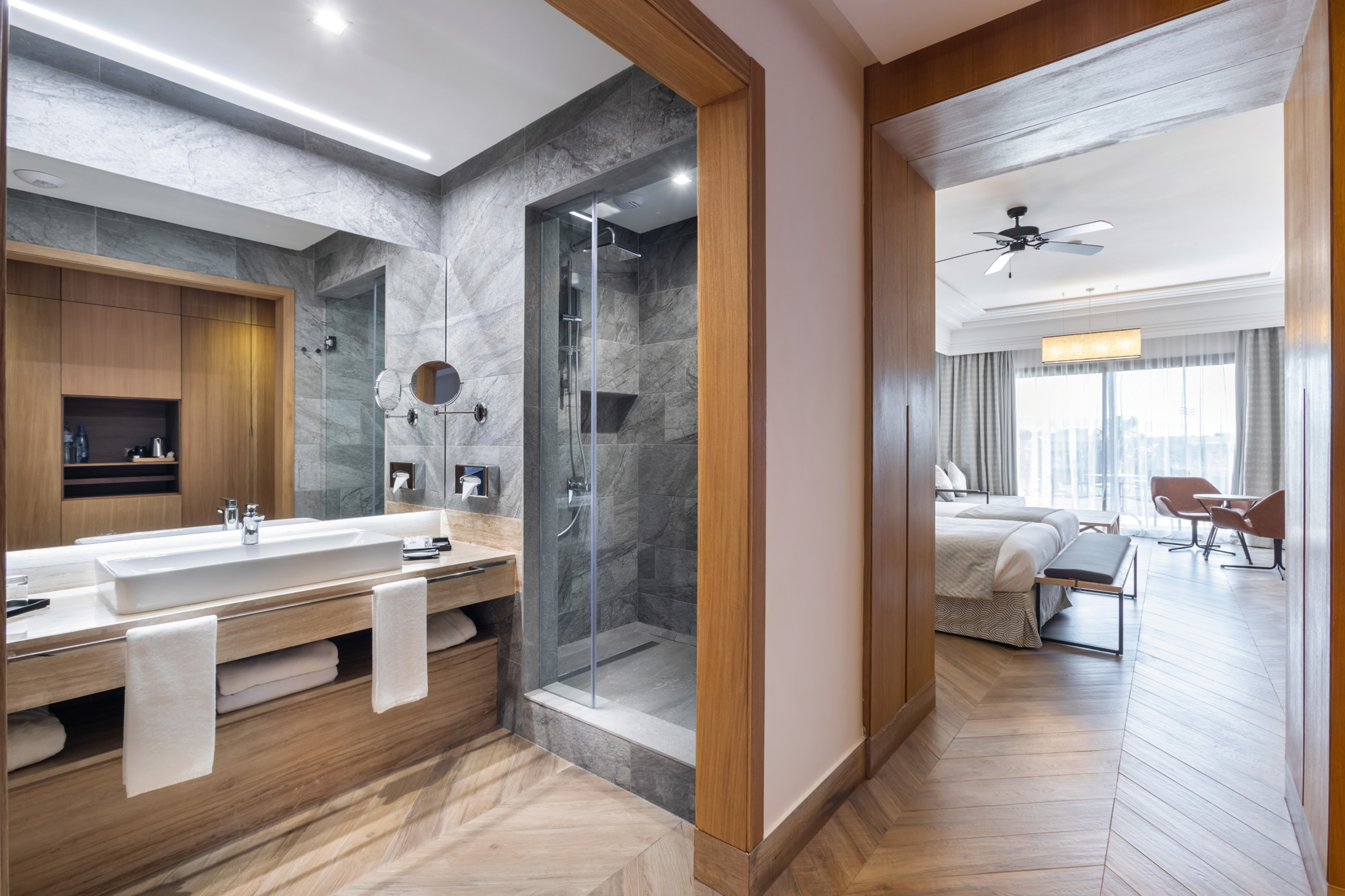 Pokoje typu Junior Suite dla maksymalnie 4 os, klimatyzacja, sejf, łazienka, suszarka, balkon lub taras minibar (dopłata), sofa, TV-SAT, telefon